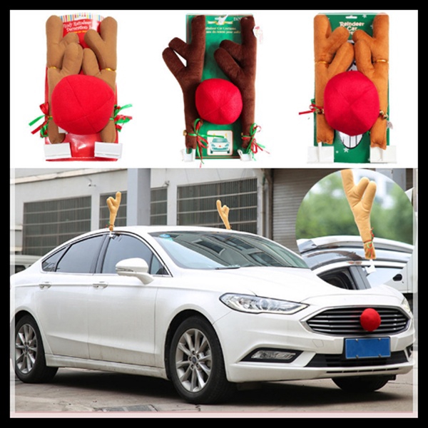 Funny Christmas Car Decorations Reindeer Antlers Truck Xmas Party Decor Kit New
