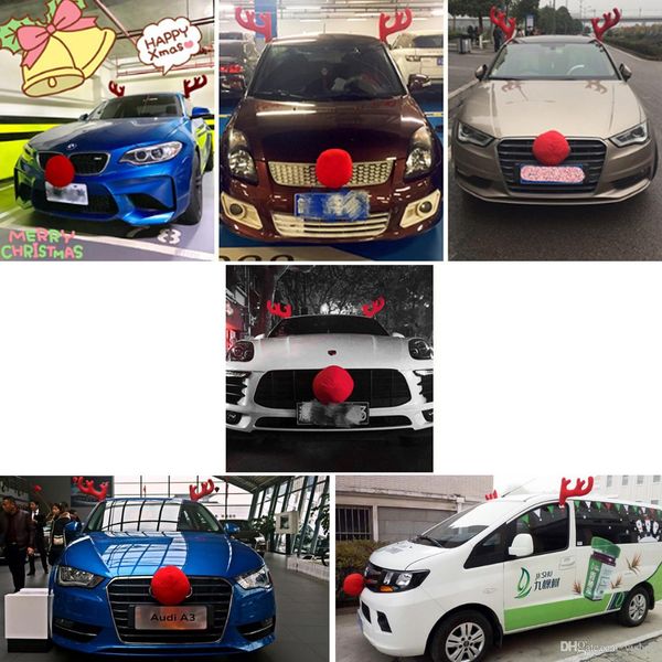 Car Reindeer Antlers Red Nose Set Reindeer Vehicle Costume Car Decoration Christmas Reindeer