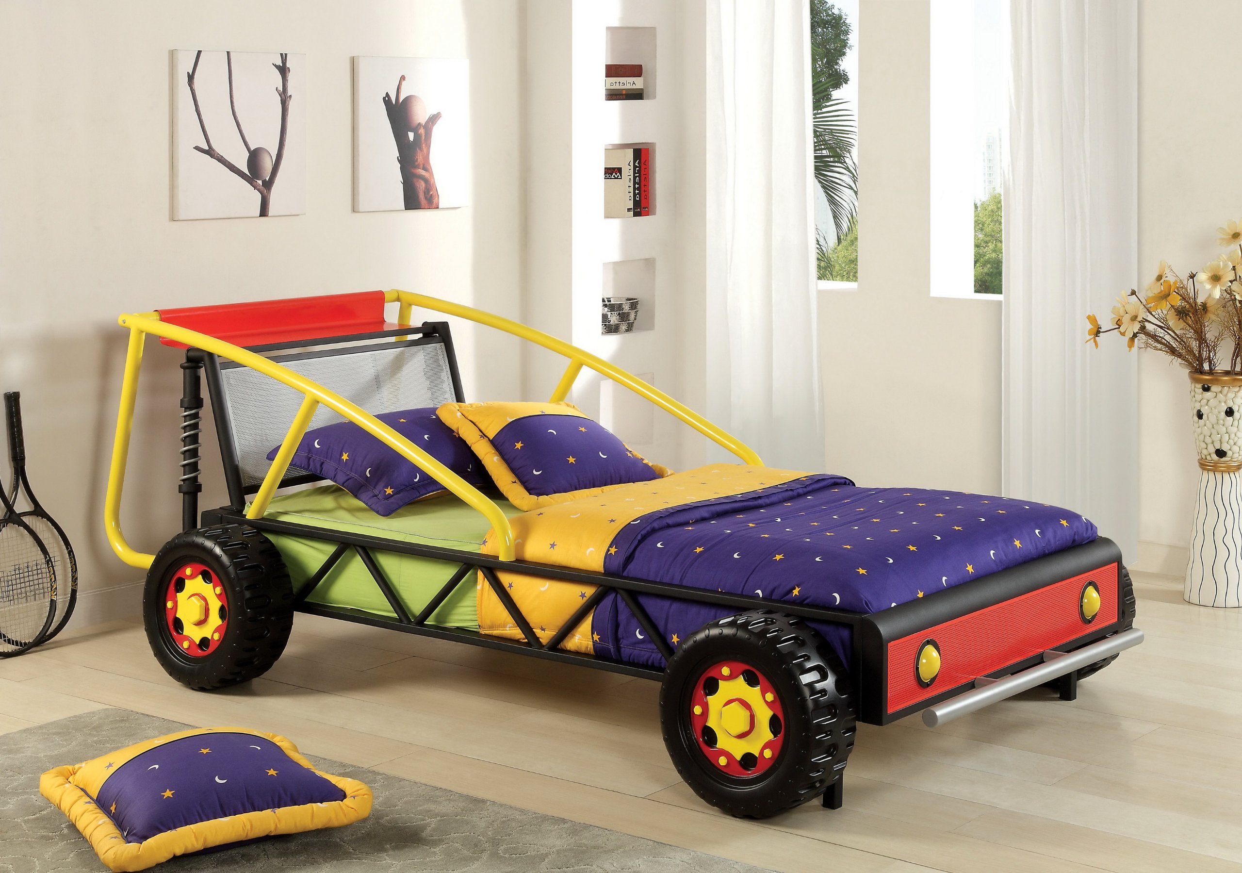 Furniture Of America Max Metal Car Bed Twin Red And Yellow