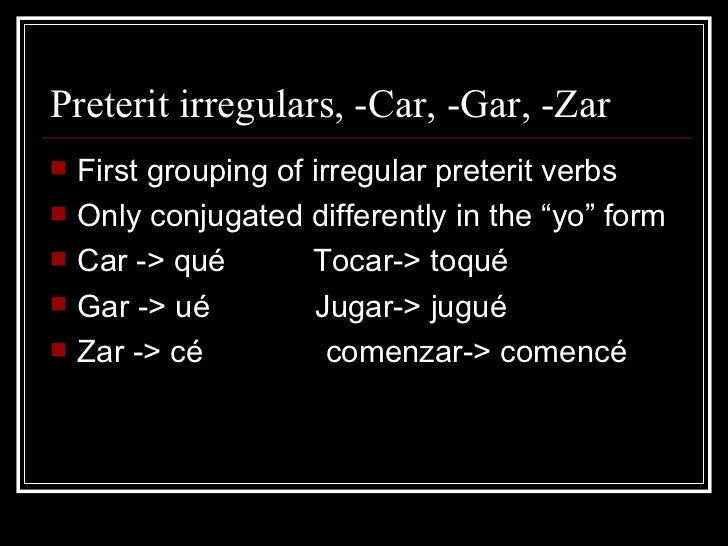Ending In Car Gar Zar C Qu G Gu Z C Irregular Infinitive Ud