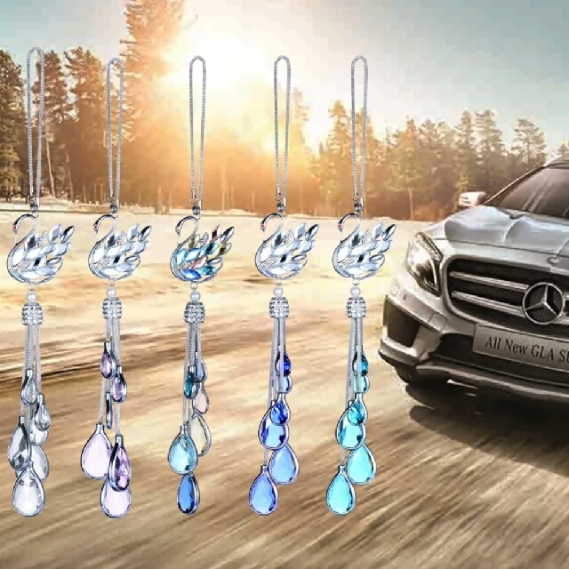 Brand New Double Sided Swan Car Ornaments Crystal Diamond