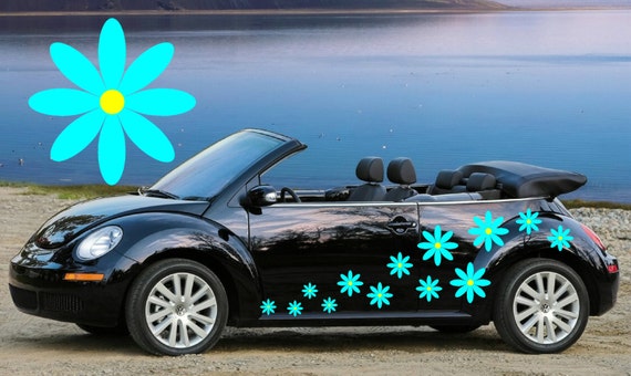 20 Sky Blue Daisy Flower Car Decals Stickers In Three Sizes