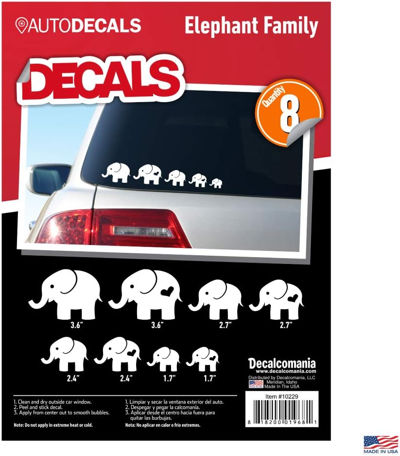 Elephant Family White Car Truck Window Stickers 2 Adults 6 Children 8 Decals Animal