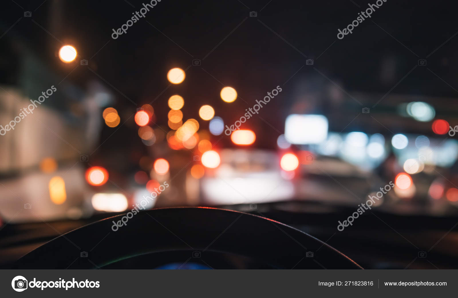 Blur Image Of Inside Cars With Bokeh Lights The Panel Car On