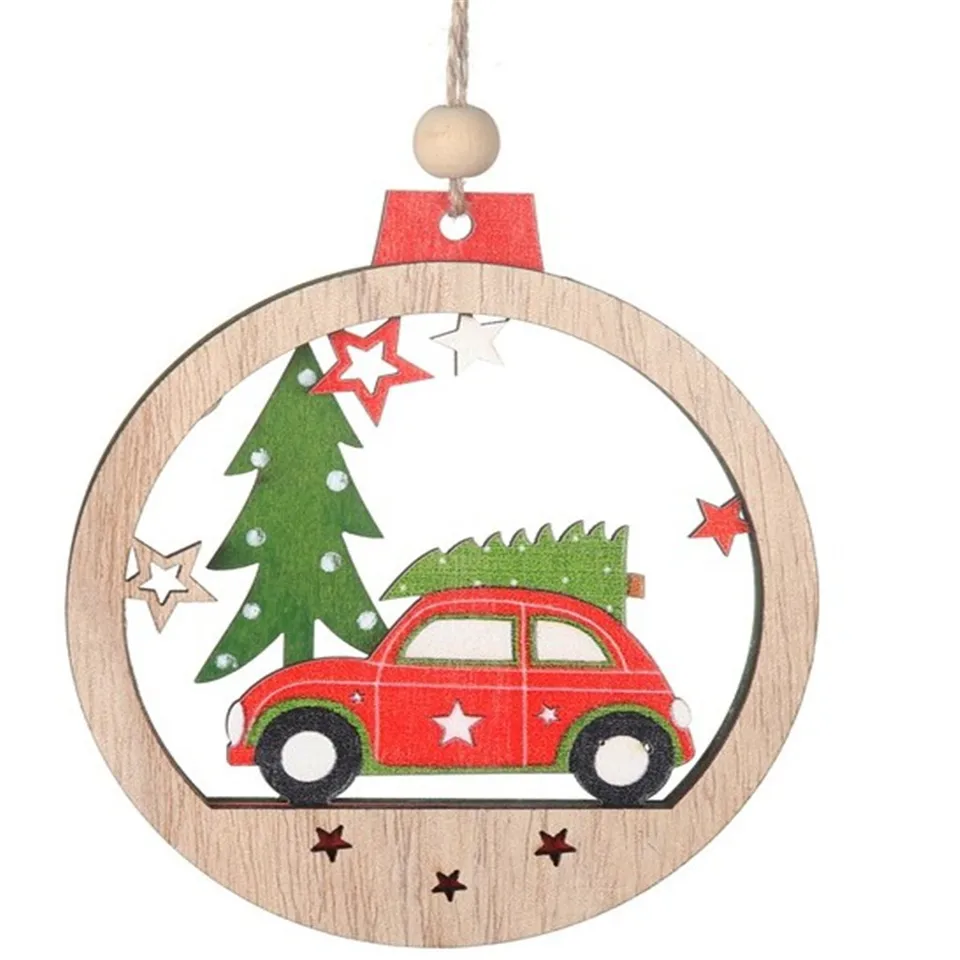 Vintage Christmas Wooden Pendants Ornaments Diy Tree Wooden Round Pendant Color Wooden Car Christmas Ornaments Kids Gift