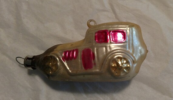 Antique German Car Christmas Ornament 1920s Figural Collectible Blown Glass
