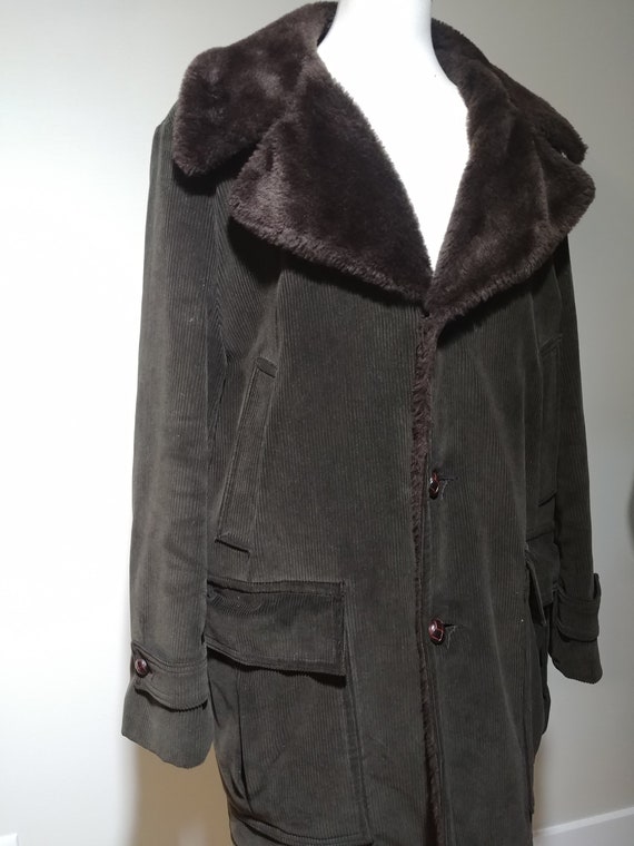 Vintage Men S 1970 S Corduroy Car Coat With Faux Fur Trim Retro Seventies Dark Brown Faux Shearling Men S Size 42