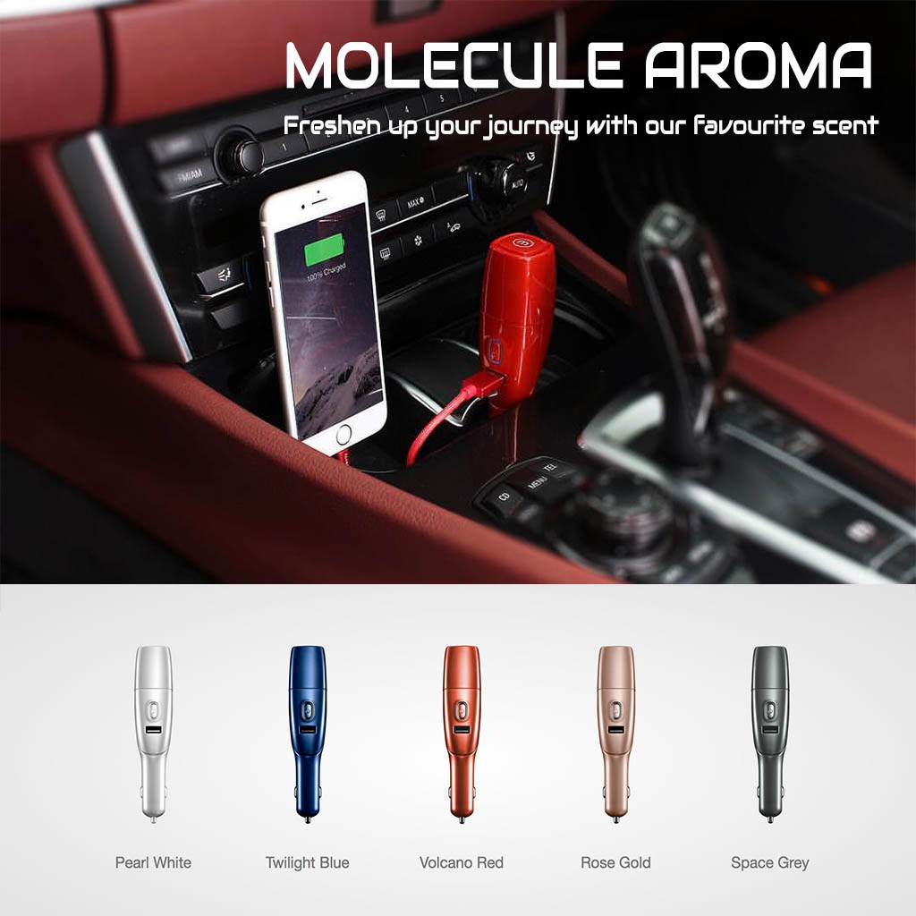 Molecule Aroma Usb Charger Car Freshener Starter Pack With 2x Free Scent