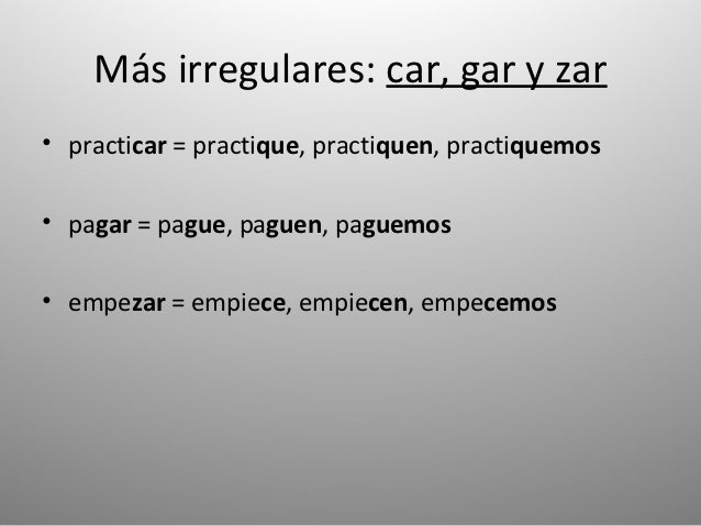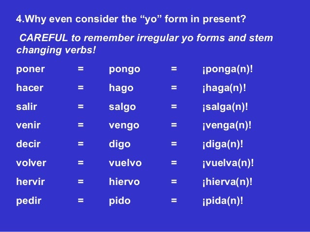 Spanish Commands Chart 18 Yo Ud And Nosotros Car Gar Zar Verbs Commands