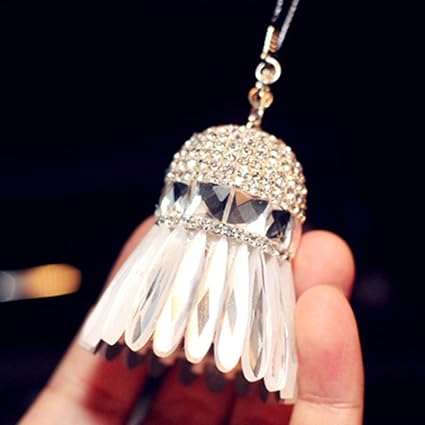 Uzhopm Crystal Badminton Car Pendant Hang Decoration Car Rear View Mirror Hanging Ornament Car Interior Decor Accessories White