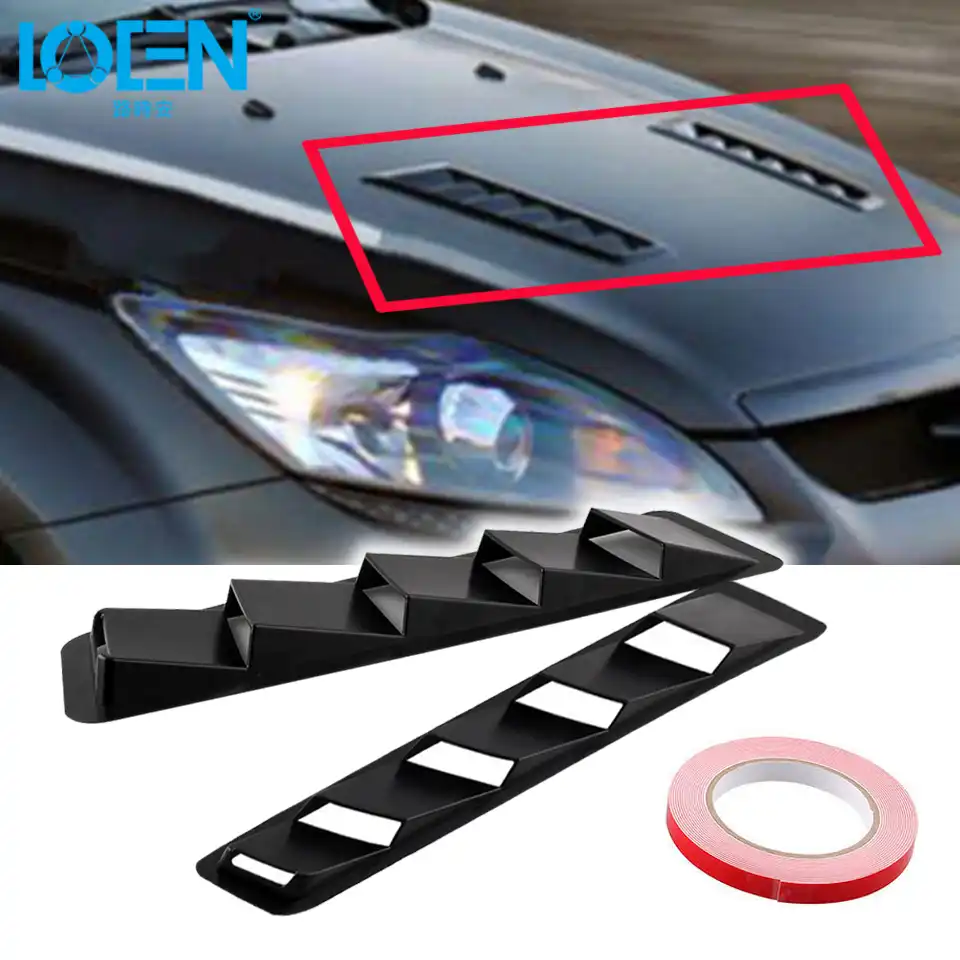 2pcs Universal Car Hood Air Intake Panel Air Intake Scoop Bonnet Hood Vent Louver Cooling Panel Trim Matte Black Abs All Car