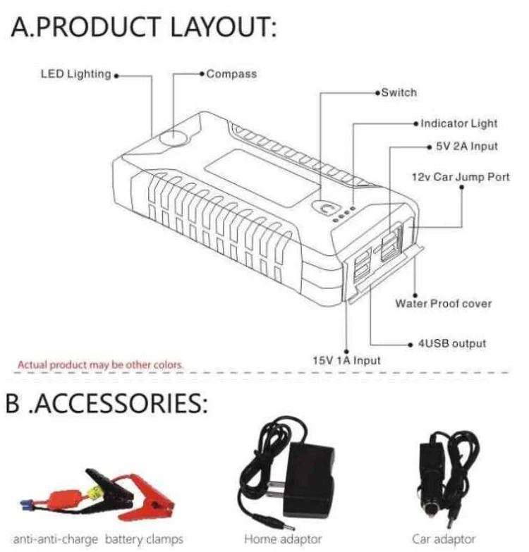 Type S 10000mah Jump Starter And Portable Power Bank Type