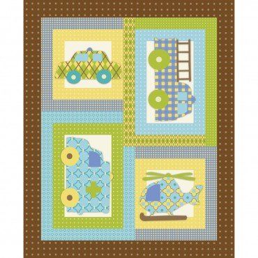 This Colorful Quilt Shows A Airplane Wagon Helicopter