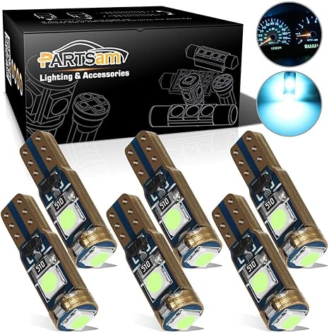 Partsam T5 73 74 Error Free Speedometer Indicator Led Light Kit Instrument Panel Gauge Cluster Dashboard Led Light Bulbs Canbus Ice Blue 6pcs