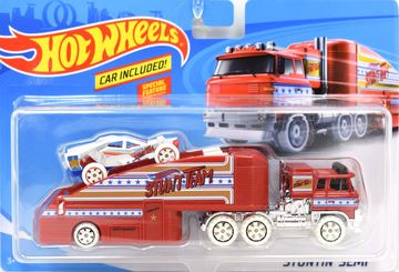 Hot Wheels Rock N Race 50th Anniversary Semi Truck Car Hauler Big Rig Diecast