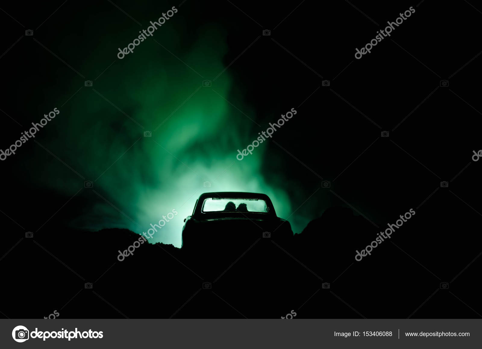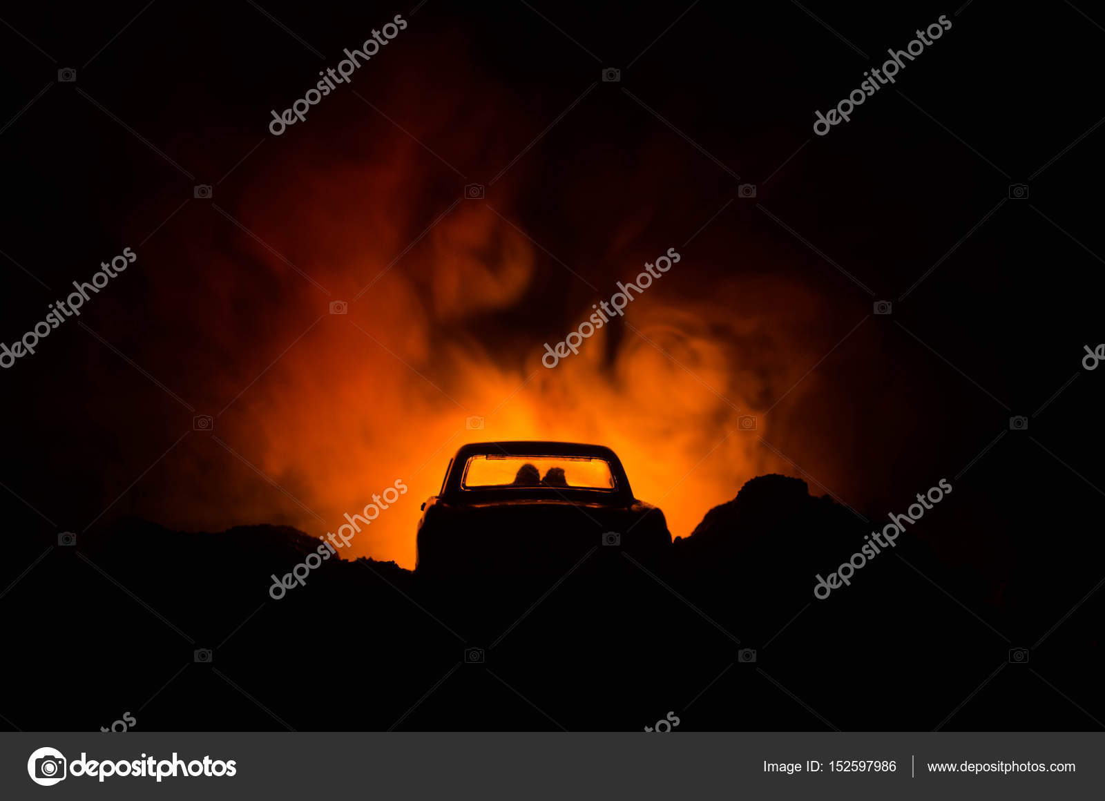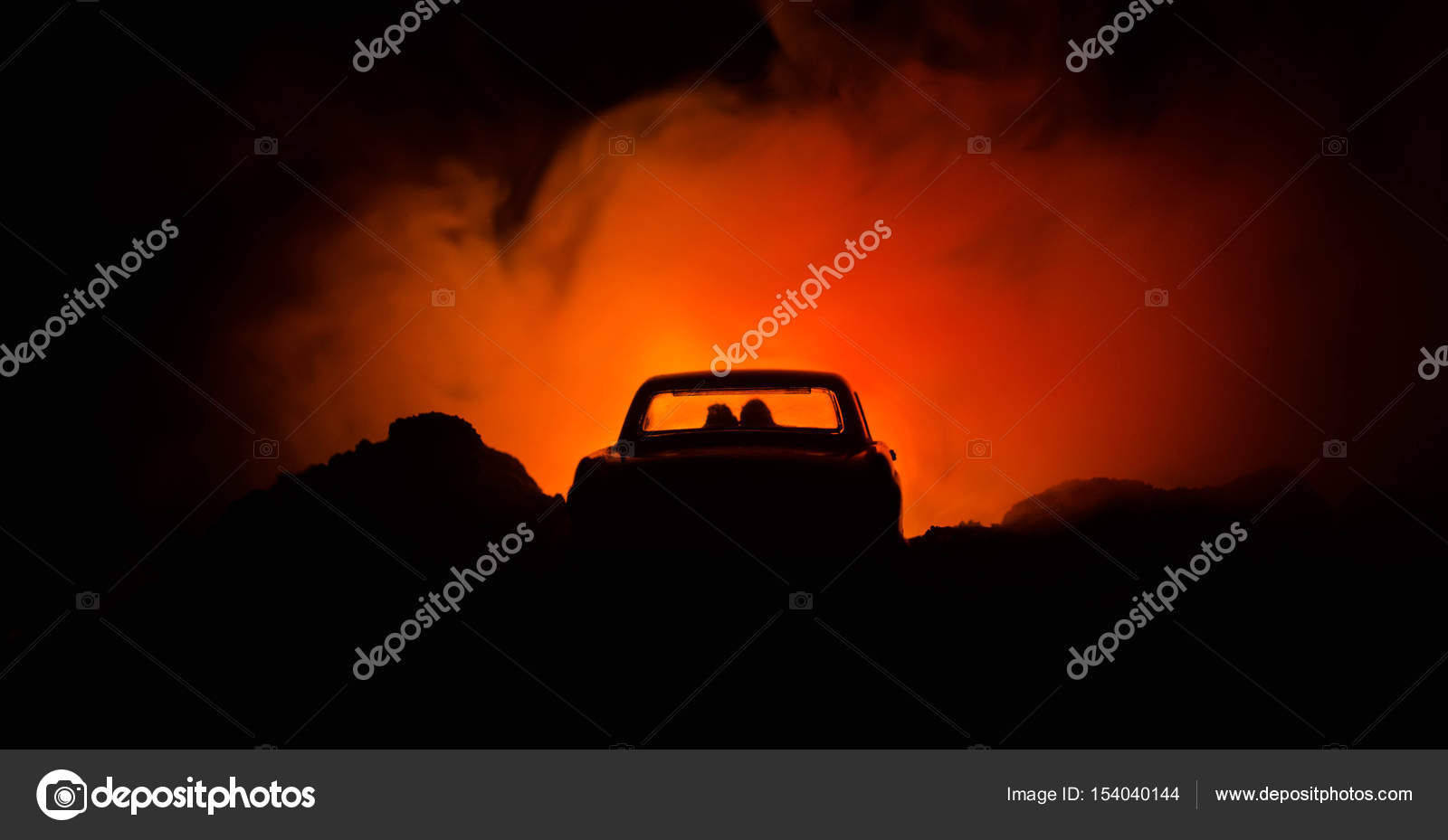 Romantic Scene Of Old Vintage Car With Couple Inside And
