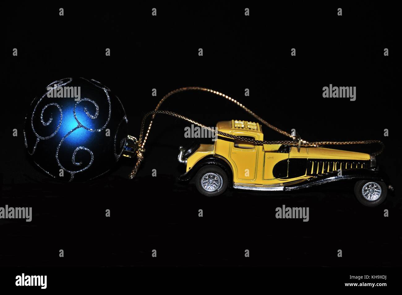 Vintage Car Gift Box Christmas Tree Lights Decoration Stock