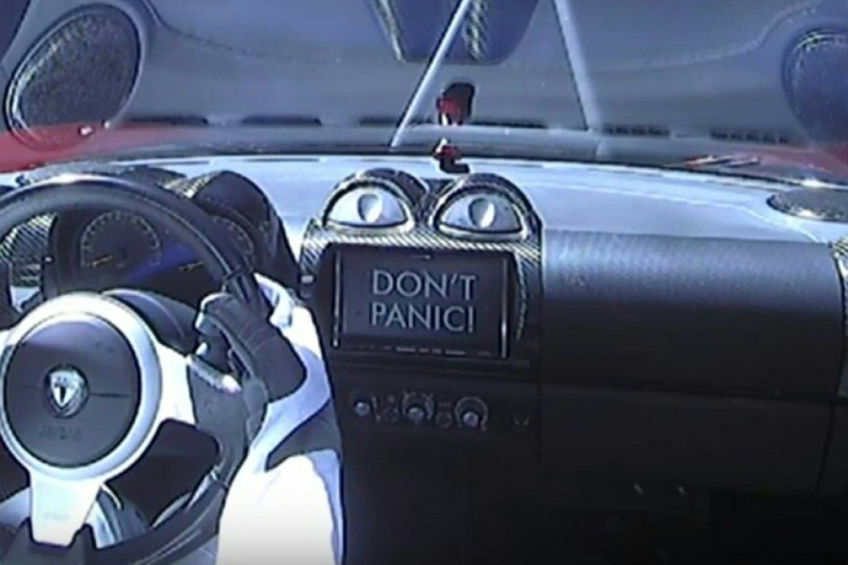 Don T Panic 2る Starman Tesla Car In Space Aol Image