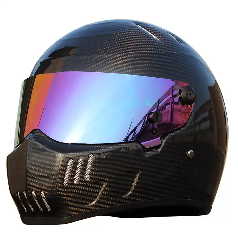 Carbon Fiber Vintage Moto Motorcycle Helmet Men Locomotive Racing Car Karting Full Face Helmet Dot Rainbow Visor Xs Xxl