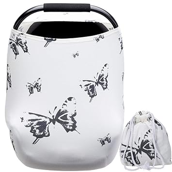 Nursing Covers For Baby Boys And Girls Butterfly Printing With Pouch Versatile Stretchy Babies Car Seat