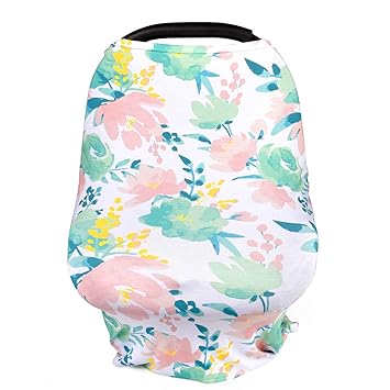 5 In 1 Stretchy Floral Baby Car Seat Covers Nursing Scarf Breastfeeding Canopy