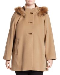 Cinzia Rocca Hooded Duffle Fur Car Coat In Camel Natural