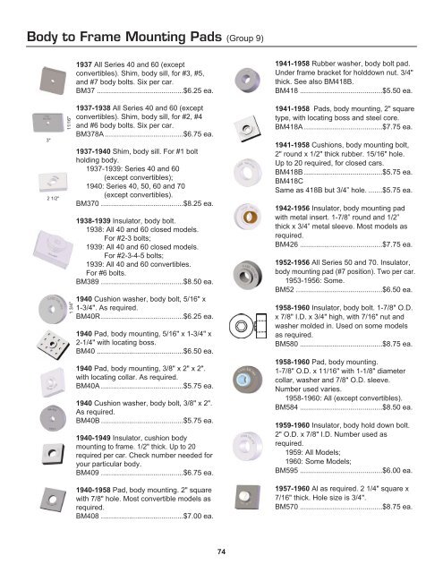 Body To Frame Mounting Pads Group 9 Old Buick Parts