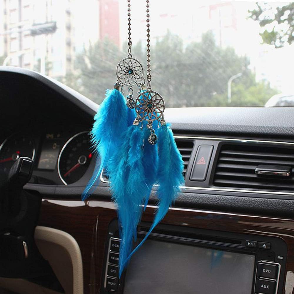 Forala Car Rear View Mirror Hanging Pendant Feather Dream Catcher Crystal Charm Bling Car Accessories For Women