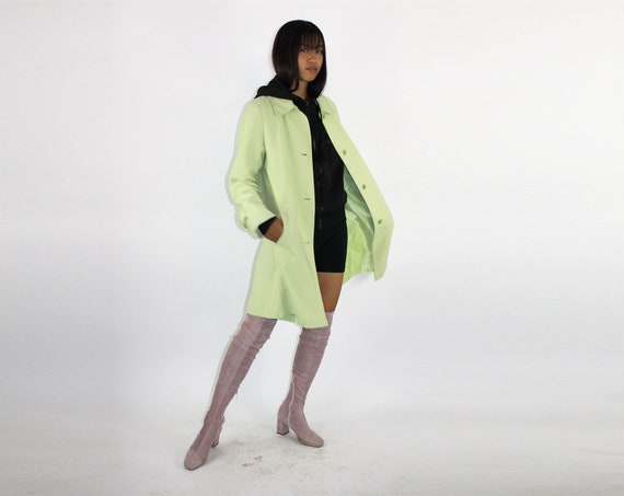 Lime Green 90s London Fog Car Coat Mini Trench Coat Womens Size Medium Pastel Green Swing Coat Mid Length Spring Jacket Crop Trench