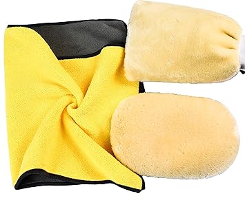 Onetrackme Motorcycle Detailing Brush Kit 3 Piece Pack With Wool Wash Brush Chenille Wash Mitt Microfiber Wash Cloth Perfect Car Boat Truck