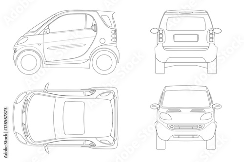 Vector Compact Smart Car In Outline Small Compact Hybrid