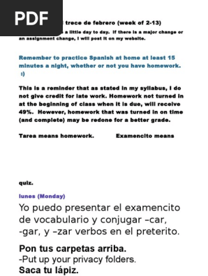 Remember To Practice Spanish At Home At Least 15 Minutes A