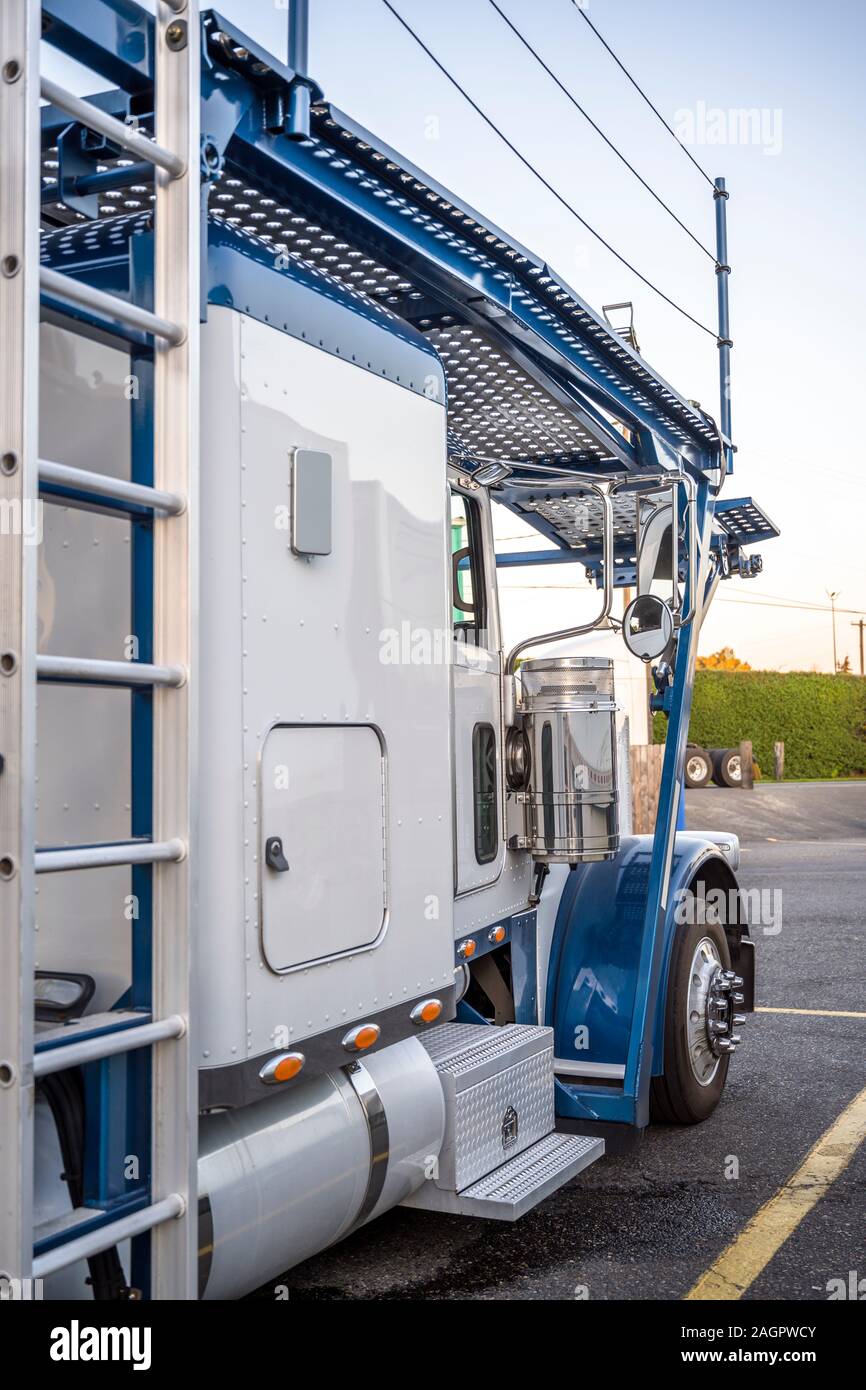 Blue Powerful Classic Big Rig Car Hauler Semi Truck