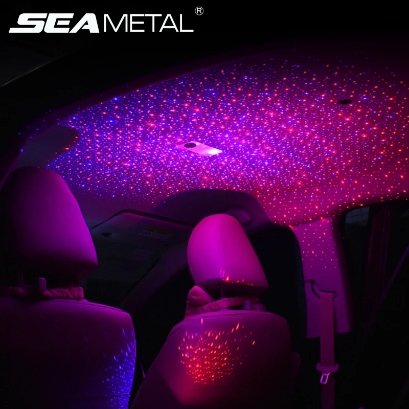 Niceeshop Car Usb Atmosphere Ambient Star Light Car Interior Lights Led Decorative Armrest Box Car Roof Full Star Projection