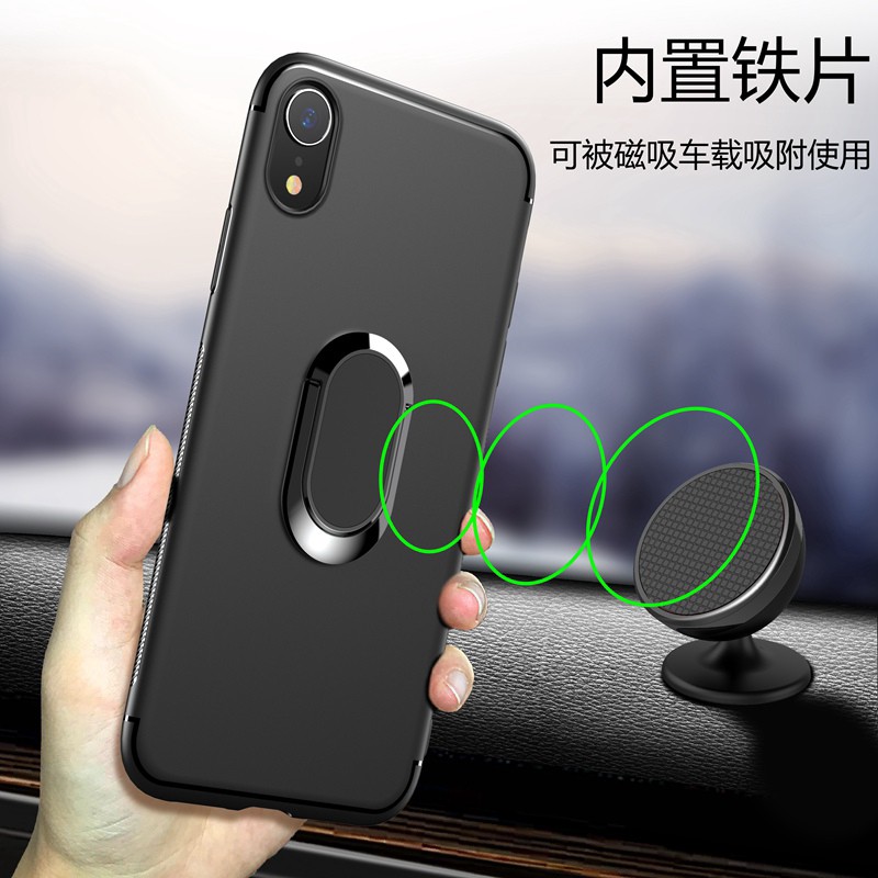Iphone Xs Max Xr Case Ring Stand Phone Case Magnetic Car Stand Soft Matte Cover