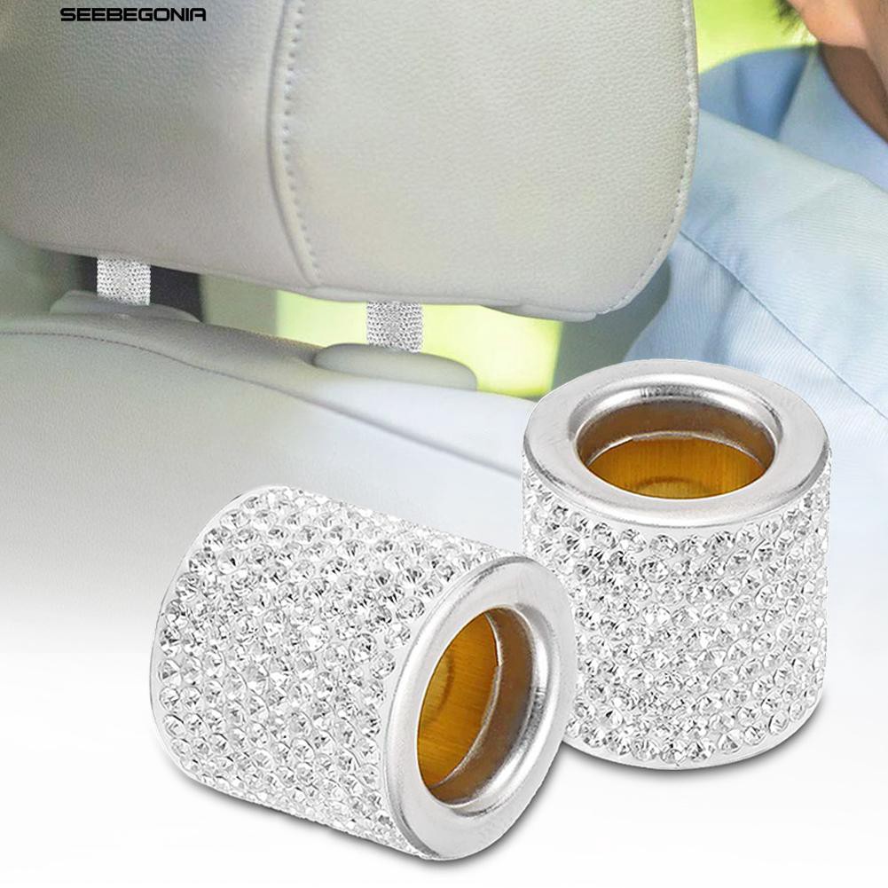 Seebegonia 1 2pcs Rhinestones Car Seat Headrest Pole Ring Interior Decor