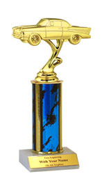 Car Show Stock Car Column Trophy With Slanted White Marble