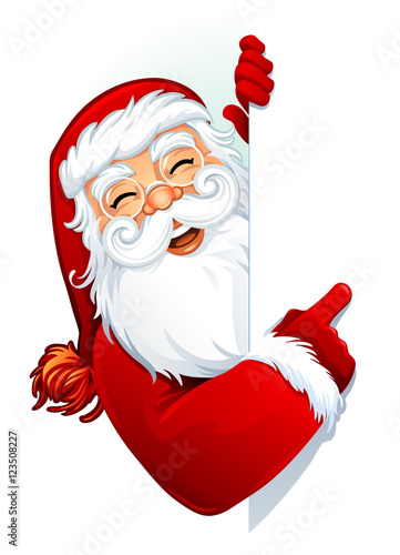 Cartoon Santa Claus Pointing A Blank Sign Copy Space
