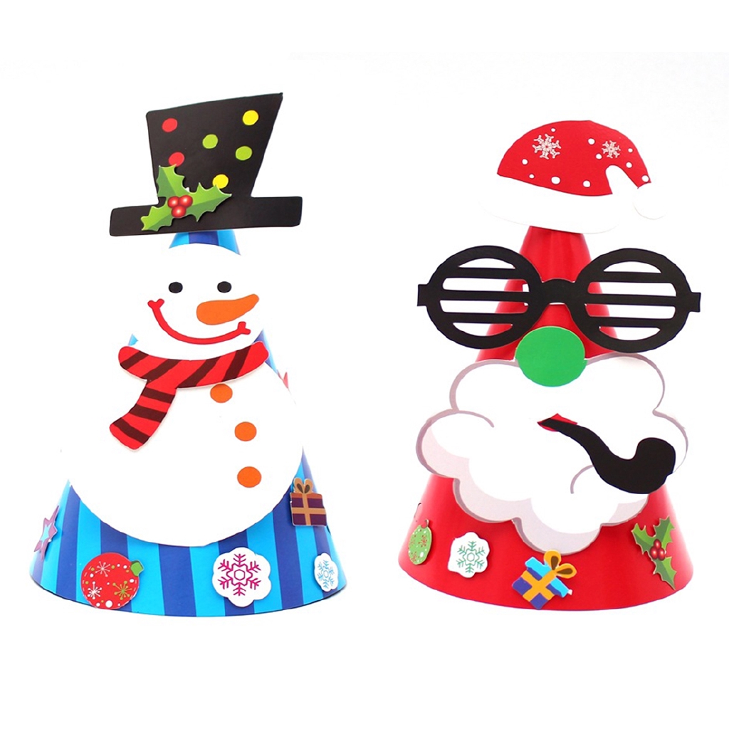 Diy Christmas Cap Children Kindergarten Paper Cartoon Santa Claus Snowman Hat Party Decor