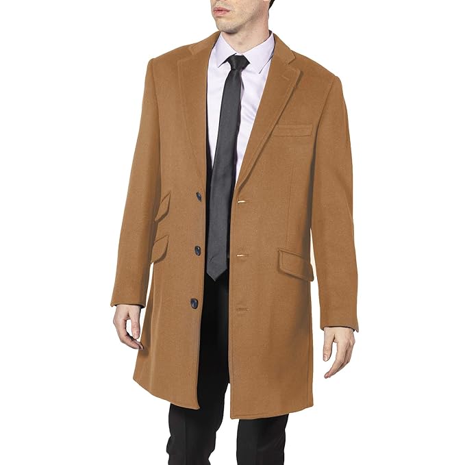 Enzo Men S Single Breasted Wool Cashmere Mid Length Car Coat Colors