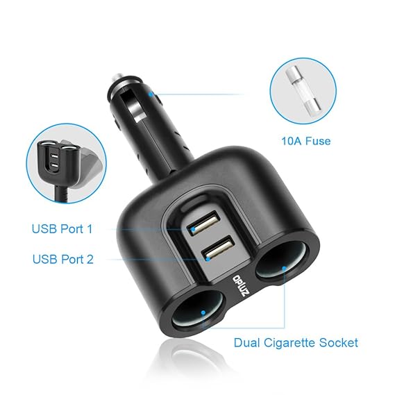 Gps Dual Usb Car Charger Adapter With 3 1a 15 5w 2 Socket Cigarette Lighter Build In 10a Fuse Car Socket Splitter