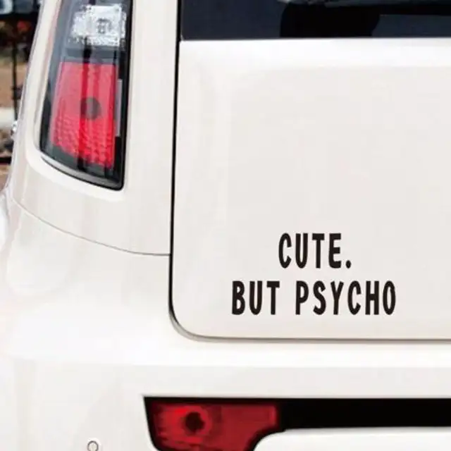 200mmx100mm Cute But Psycho Car Bumper Sticker Girly Funny Drift Jdm Wall Art Decal Car Decals Car Styling A00346