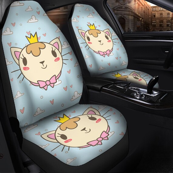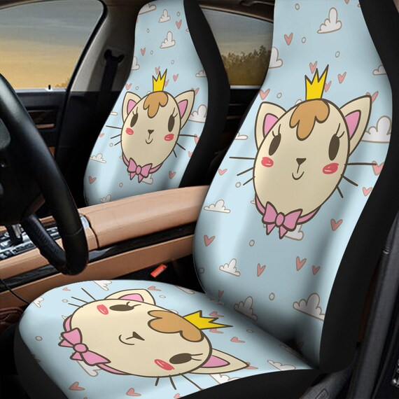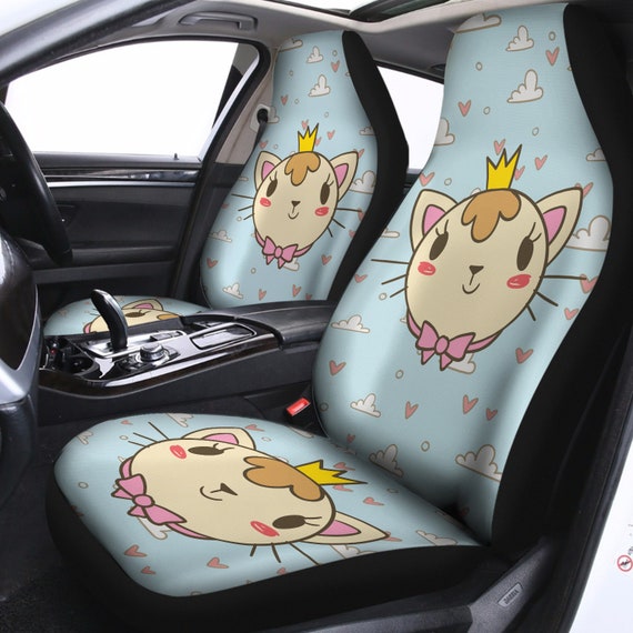 Cute Cat In Bow And Crown Car Seat Covers 2 Piece Front Universal Fit Cat Design Seat Covers Cat Lover Seat Covers Car Seat Covers