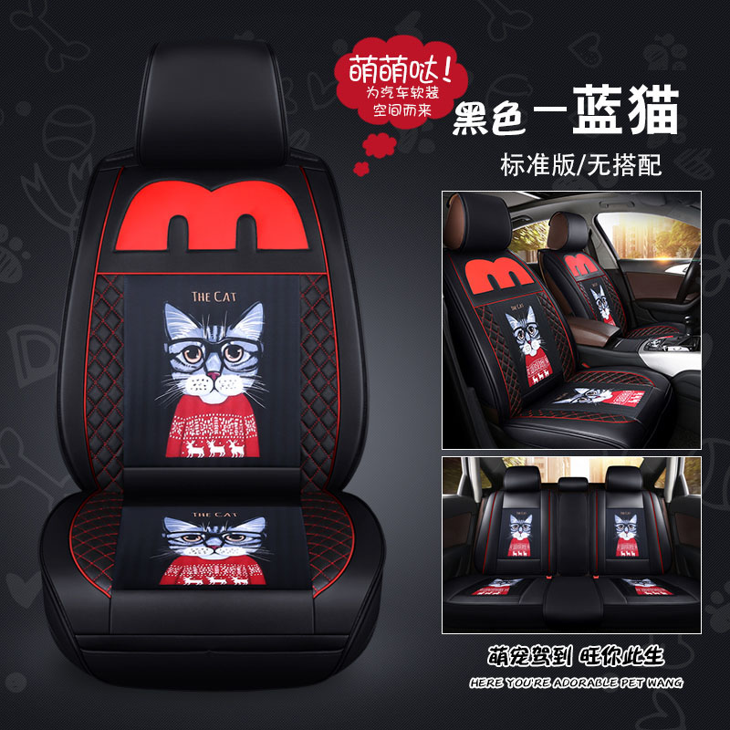 Car Seat Covers For 5 Seat Cars Cute Cat Design Universal Pu Covers With 2pcs Headrests 2pcs Pillows
