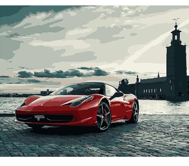 Red Sports Car Paint By Number Kit Diy Kit Painting On Canvas Adult Craft Kit Home Decor Gift Hobby Kit 16 20 Painting