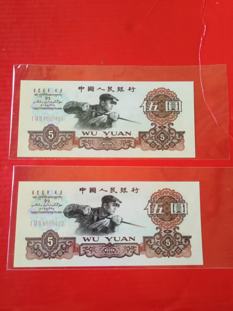 Prc 5 Yuan 1960 Dark Black Variety Both In Superb Gem Unc Scarce