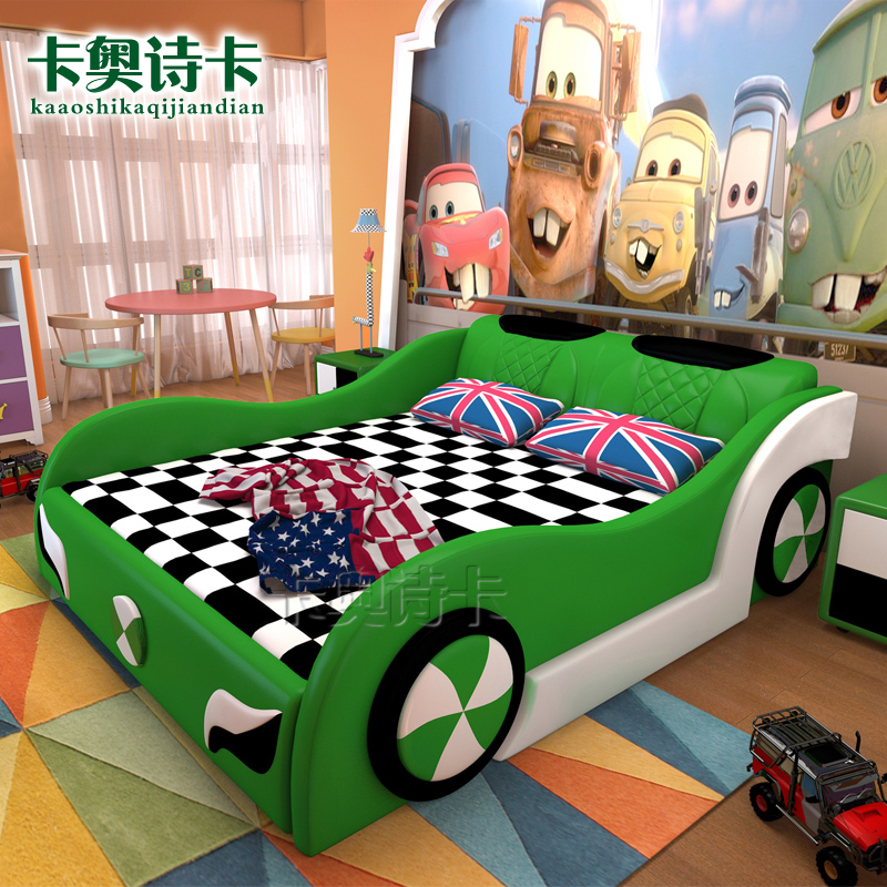 Child Car Leather Storage Bed With Boys And Girls Creative Cartoon Fence 1 2 Meters 1 5 Meters Of Solid Wood Leather Bed