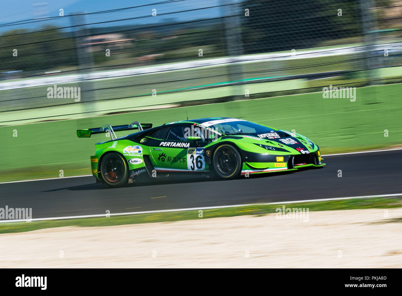 Full Length Of Lamborghini Car In Action At Turn On Circuit