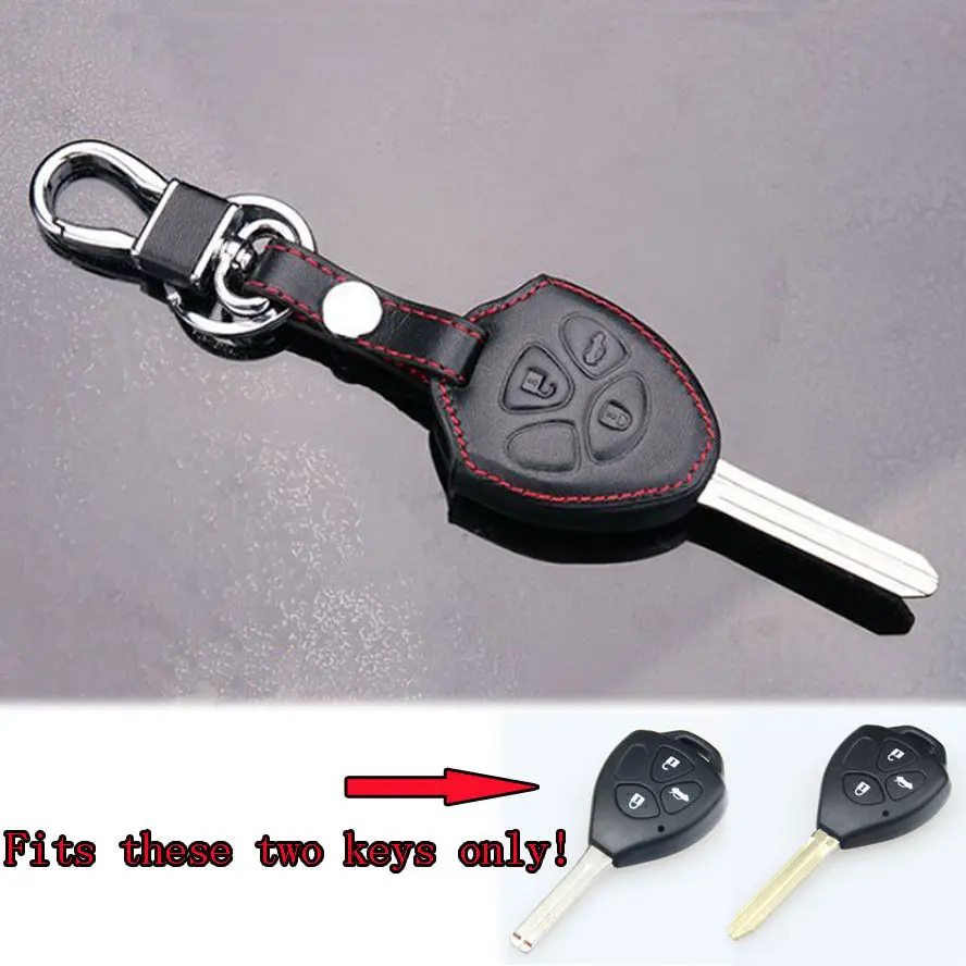 Us 10 01 25 Off Leather Car Remote Key Holder Case Cover Fob With Keychain Keyring Fit For 4buttons Toyota Camry Rav4 Corolla In Key Case For Car