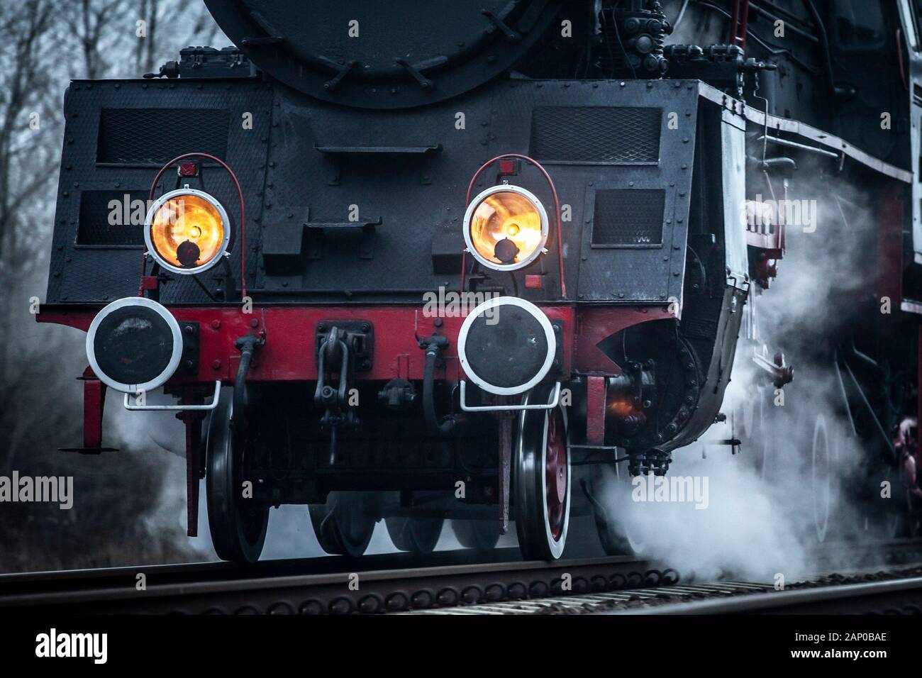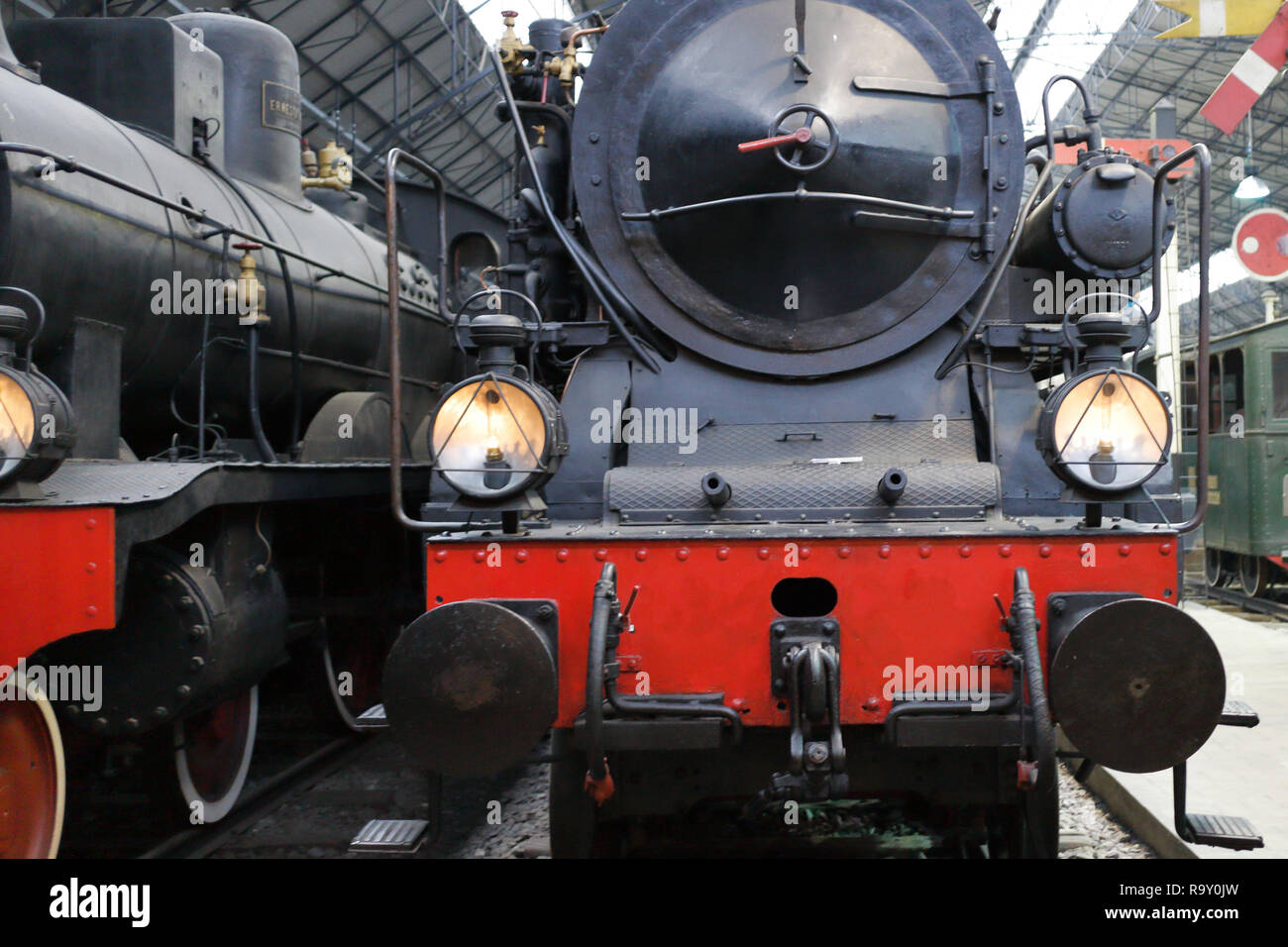 Old Steam Locomotives Stopped At The Train Station Stock